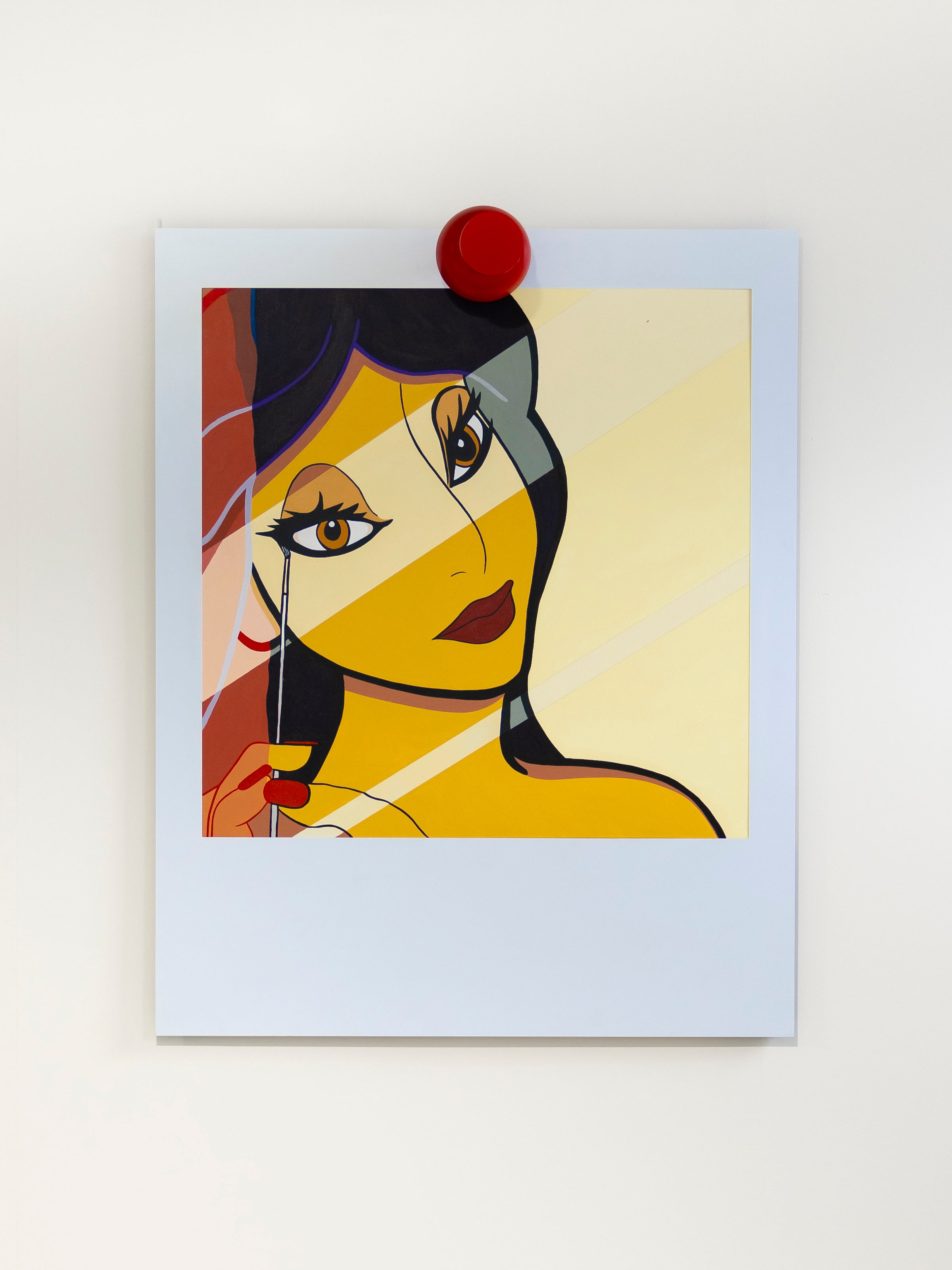 Acrylic on canvas with artist made frame and thumbtack.